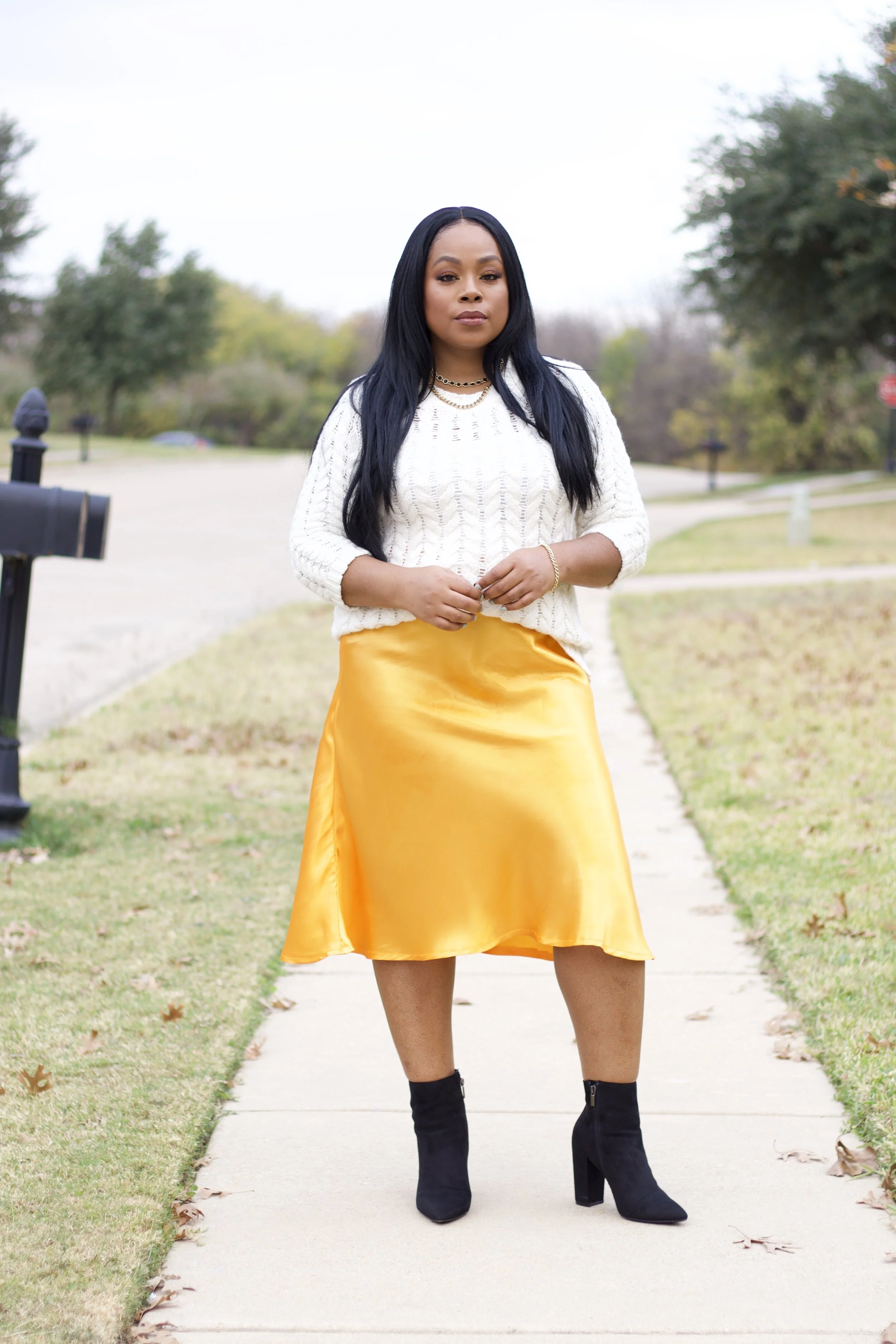What’s good Lovies?! I finally had a chance to get some sewing done this week…..YAY!!!!! I’ve been working on a secret sewing project, but I can’t share just yet, so this is my first “official” make for the month of November. Lately, I’ve been seeing these gorgeous silky, satiny, midi length, bias cut slip skirts (that was a mouthful) EVERYWHERE…….EVERYWHERE and I’m obsessed. Now, I know these beauties aren’t a “new” trend by any stretch, but they have never really spoken to me until now. Not only are they speaking to me, honey, they are screaming my name! I fell down the Pinterest rabbit hole and pinned all the things bias cut and swishy……because swishy, duh.